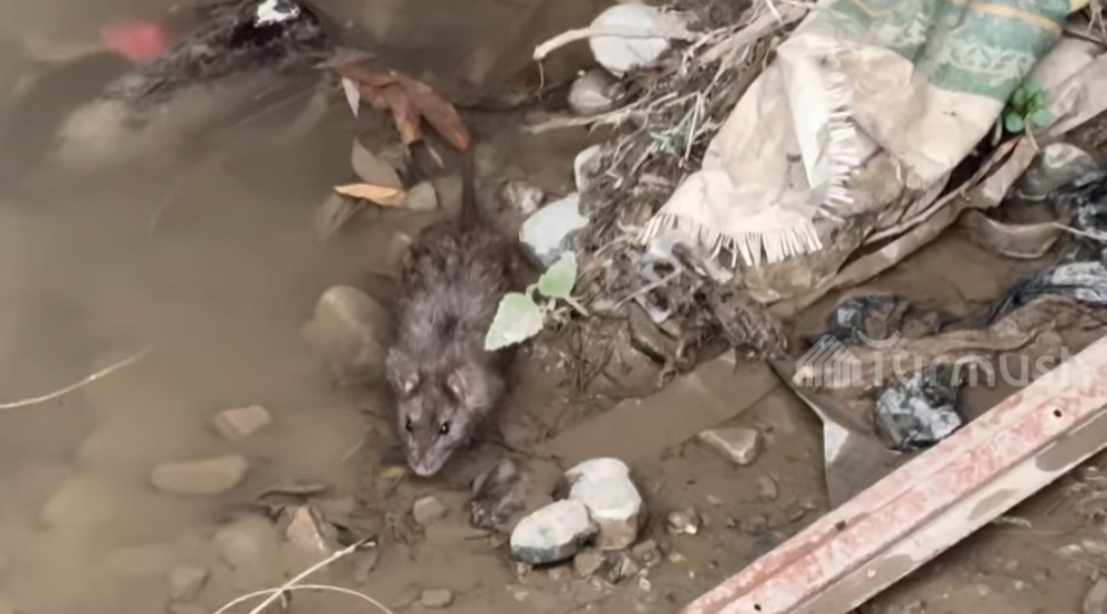 Сточные воды из заведений общепита в городе Ноокат сливают в канал — жители встретили крыс. Видео